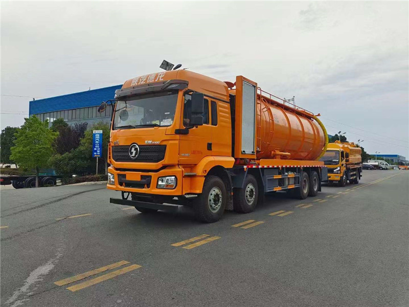 程力在吸污車的基礎上研發出清洗吸污車,清洗吸污車是在吸污車和高壓清洗車的基礎上加裝吸污泵、吸污罐、吸污管道等設施的集清洗和吸污兩種功能于一身的特種車輛,由兩個罐體、兩個泵(高壓清洗泵、真空吸污泵)、兩套管路系統等組成。