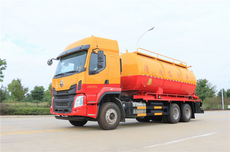 東風天龍多功能聯合疏通車采用東風天龍底盤,工程黃駕駛室,康明斯290馬力國六發動機,原廠雙層大梁,法士特9檔變速箱,軸距4350+1350,295真空胎,原廠abs,帶方向助力,離合助力器,氣剎制動,帶冷暖空調。罐體總容積約21立方米,采用武鋼優質鋼板制作,壁厚8個厚,罐體中間合理設計防浪板,污罐內襯蝶形封頭。高壓泵采用德國品孚300L型號,18兆帕壓力,自主研發大過濾器,免拆洗,可以有效防止雜質進高壓泵。