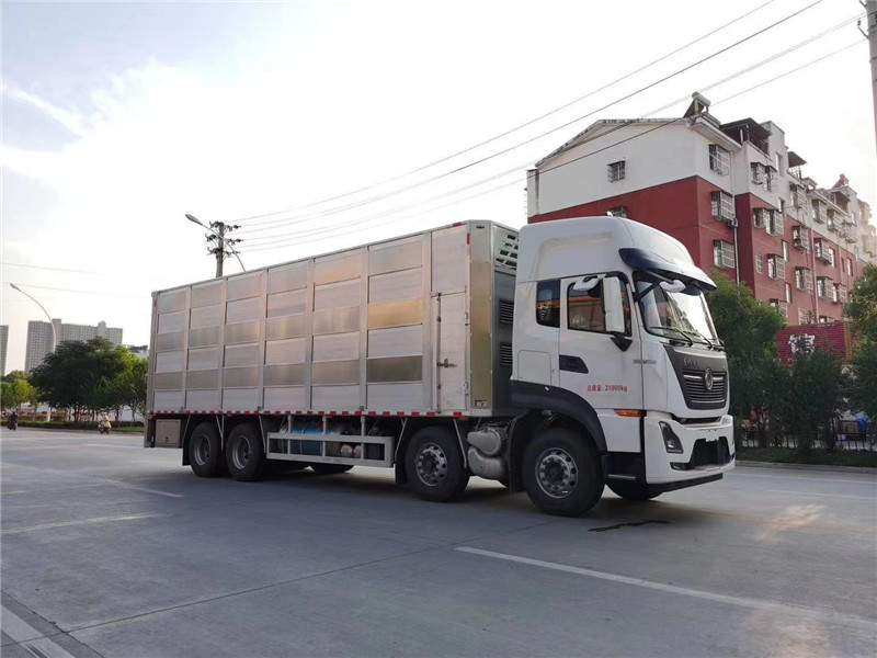 恒溫運豬車專業術語叫做畜禽運輸車,也被叫做拉豬車、運豬車、雞苗運輸車等等,主要用于活禽類運輸,有廂式和倉柵式兩種結構形式,這里所說的恒溫運豬車主要指的是廂式畜禽車,廂式畜禽車的配置更加高端,衛生消毒系統更加的完善,舒適度也提高了很多,又是恒溫系統,運輸效率也很高,是現在市場比較流行的畜禽車型,接下來小編就為大家介紹一款單橋的畜禽車型——東風天錦VR單橋國五畜禽運輸車
