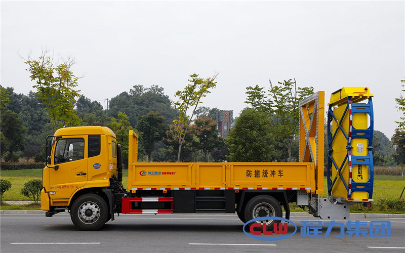 總而言之,這款東風多利卡D6國六防撞緩沖車主要功用置于道路施工作業人員和設備后方,在發生追尾事故中充當肇事車輛和施工作業人員或設備的緩沖區域,并且通過自身結構變形吸收撞擊能量,限度的降低施工人員或設備發生危險的幾率,同時限度的降低肇事車輛及人員的危險。