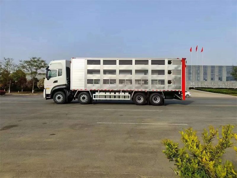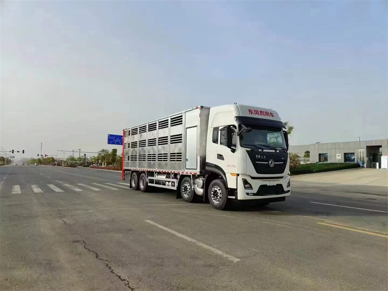 東風(fēng)天龍鋁合金恒溫運豬車底盤配置:東風(fēng)天龍前四后八高頂駕駛室,國六龍擎465馬力發(fā)動機,2050+4600+1350軸距,原裝ABS,向助力,中控鎖,電動門窗,龍擎14檔手動/自動變速箱,12R22.5真空胎。整車尺寸:12000×2550×3980mm。