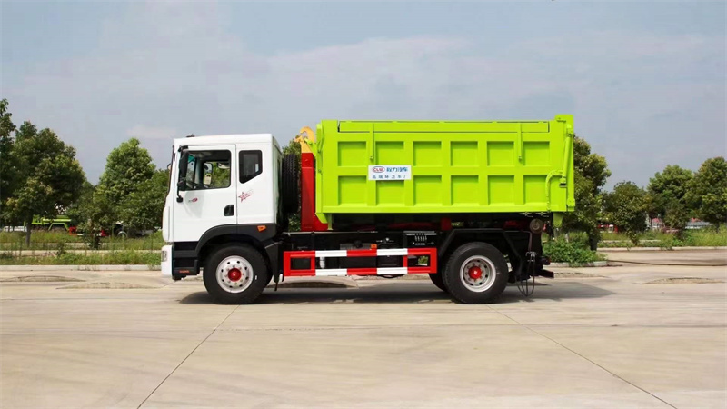 車廂可卸式垃圾車采用全封閉式垃圾箱,并可被吊裝和卸離底盤。具有結構簡單,操縱方便靈活,安全可靠,機械化程度高等特點,因而使其具有較高的工作效率,同時可防止誤操作,避免事故發生,并可節省人力,減輕工作人員的勞動強度。由于它的特殊結構型式和工作方式,使其在裝車和運輸過程中能有效地避免二次污染及噪聲污染,對于保護環境極為有利,是一種新型垃圾收集和運輸車。