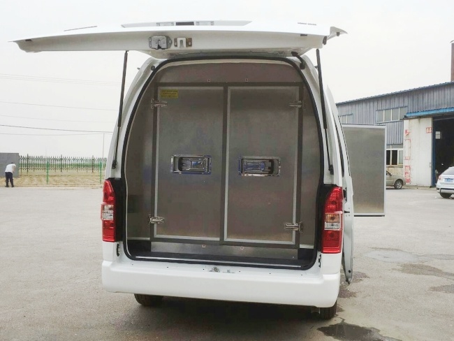 二、廂體配置:采用我公司晶龍工藝制造,保溫性能達到國家A級標準廂體內部尺寸:2900X1500X1450容積為6立方,保溫材料為無空隙填充聚氨酯發泡,廂體全面采用優質不銹鋼制造,樹脂膠無縫粘連,后門全密封不銹鋼雙開門,不銹鋼后門合頁及鎖件,廂體內部采用LED照明燈及廂體示寬燈。